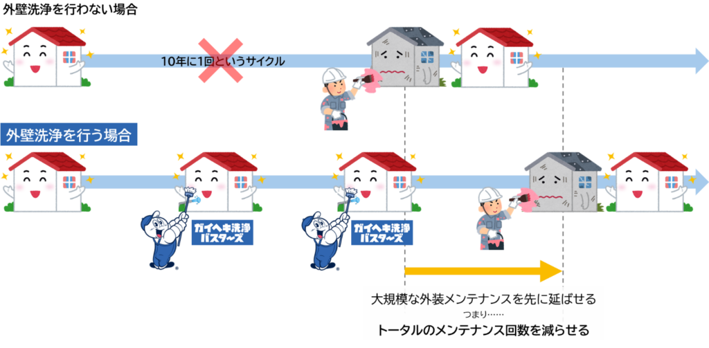 塗装時期の10年よりも前にメンテナンスとしての洗浄をオススメしております。