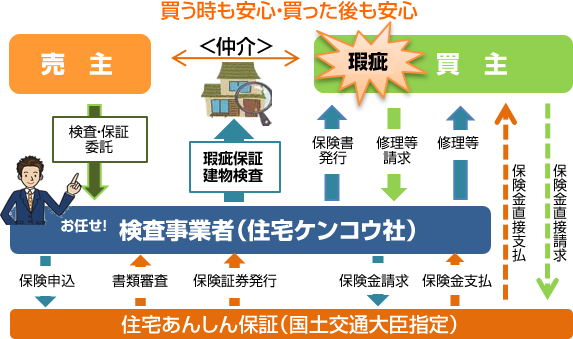 このような中古住宅の検査や保険付の保証の引き受けを行うことができるのは、国土交通大臣から指定を受けた保険法人の指定検査事業者となり、住宅ケンコウ社はそれに該当します。